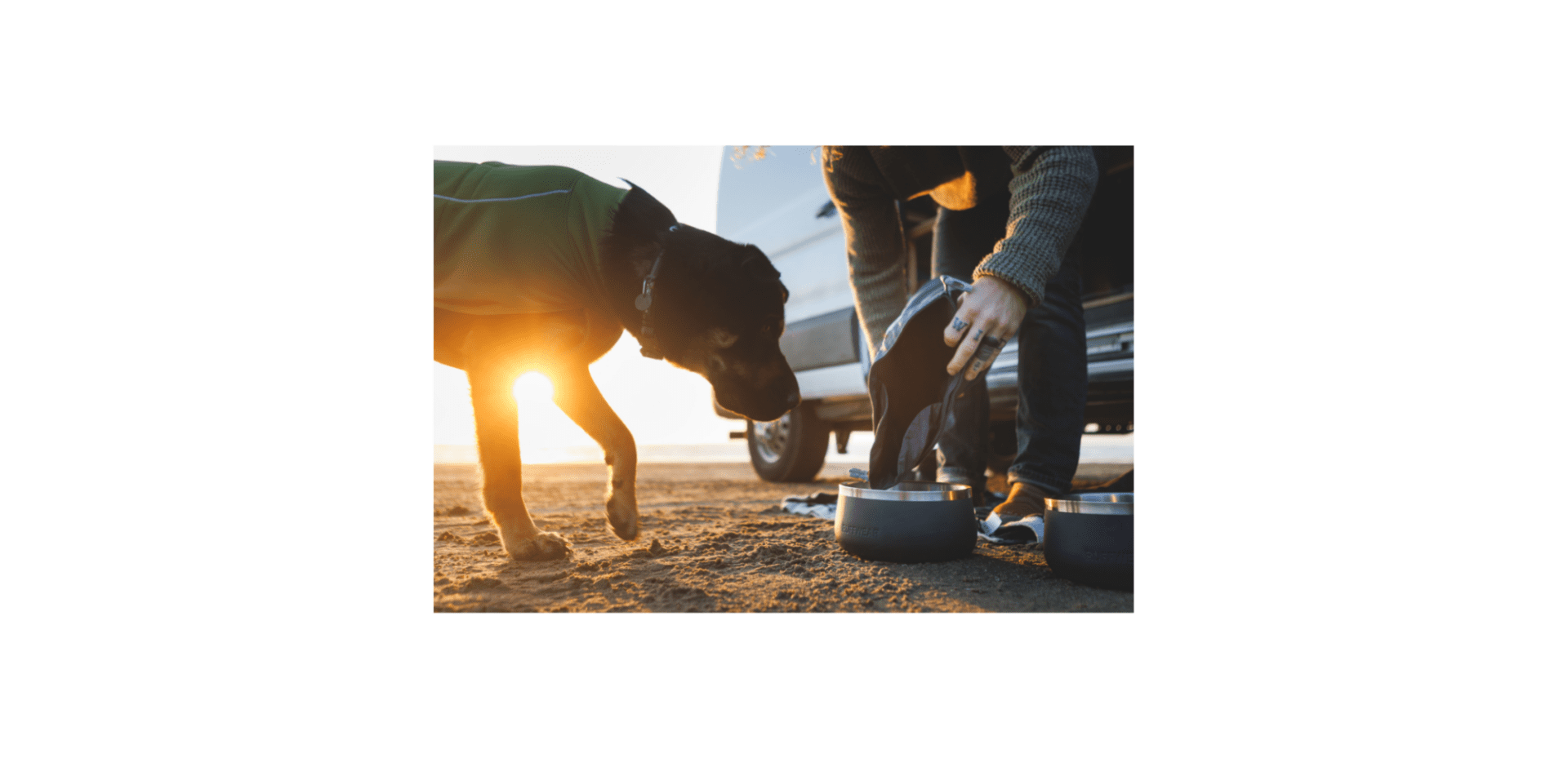 El alimento se sirve cómodamente mediante un pico dispensador plegable, mientras que un compartimento interno independiente permite guardar platos plegables u otros accesorios para perros.