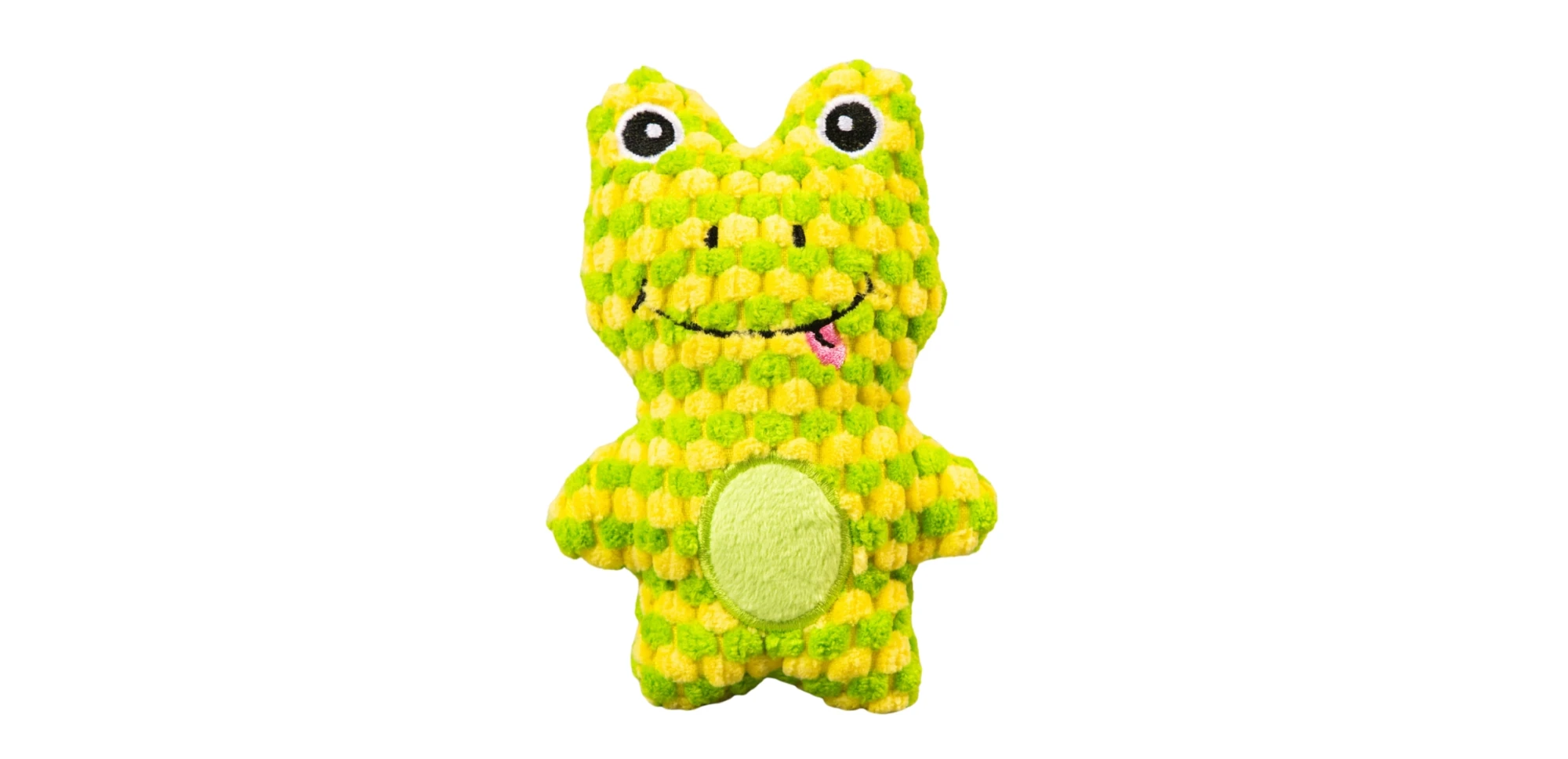 Dale a tu perro pequeño un nuevo compañero de juegos con este simpático peluche en forma de rana. Su diseño liviano y su textura suave lo hacen ideal para juegos de atrapar o llevar. Incluye un sonido chirriante en el interior que estimula el juego interactivo y combate el aburrimiento. Gracias a su estructura resistente y compacta, es perfecto para sesiones de juego seguras y entretenidas.
